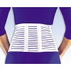 Quality 7" high elastic with four flexible plastic stays in the back to provide strength to the lumbar region. Four inch wide tapered breathable elastic bands overlap and give a contouring shape to most body types. Unique ventilated filament stitch, soft plush finish with an easy hook and loop closure. Ideal for lightweight lumbar support. Latex free. Color: White.