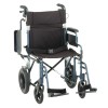 The Lightweight Transport Chair 19 in. (model 352) has a lightweight aluminum frame and padded upholstery. It has a quick release fold-down back, as well as padded, detachable/reversible desk arms for added convenience. This transport chair has locking rear wheels, as well as hand brakes for added safety and control.